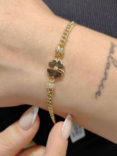 GURMET ZİNCİRLİ YONCA FİGÜRLÜ 14 AYAR ALTIN TARZ BİLEKLİK