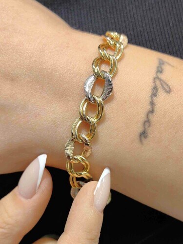ÜÇ RENKLİ 14 AYAR ALTIN ZİNCİR BİLEKLİK