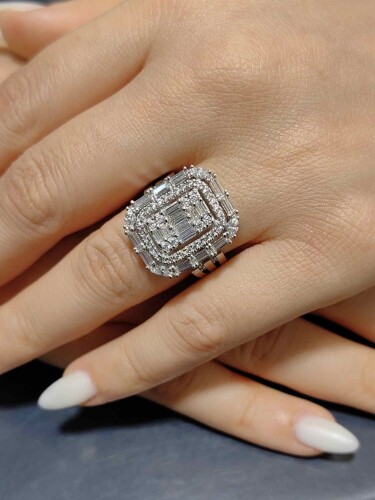 14 AYAR BEYAZ ALTIN ÖZEL TASARIM BAGET ALTIN YÜZÜK