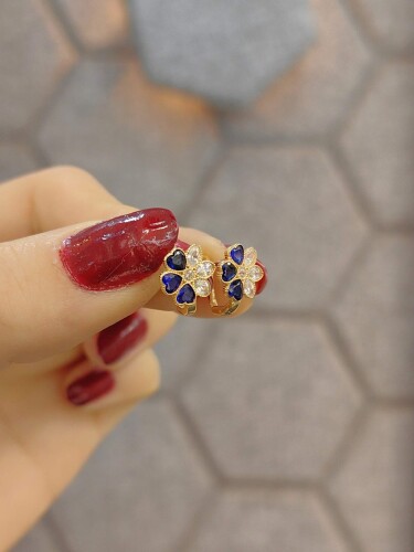 8 AYAR MAVİ TAŞLI ÇİÇEK MODEL BEBEK ALTIN KÜPE