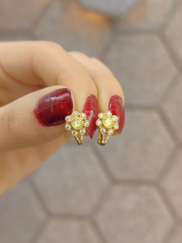 8 AYAR SARI TAŞLI ÇİÇEK MODEL TARZ BEBEK ALTIN KÜPE