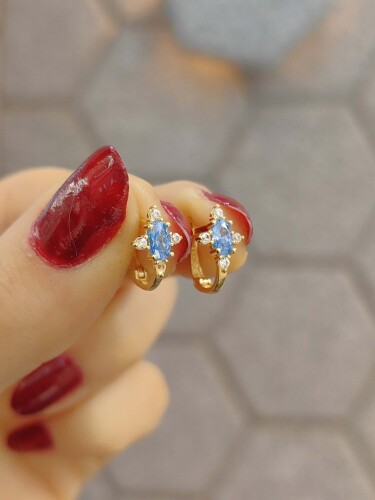 8 AYAR LAÇİVERT TAŞLI ÖZEL TASARIM MODEL TARZ BEBEK ALTIN KÜPE