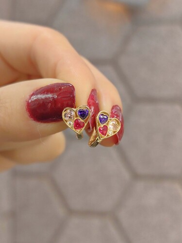 14 AYAR RENKLİ TAŞLI KALP MODEL J ALTIN BEBEK KÜPE