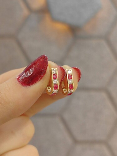 8 AYAR PEMBE TAŞLI TARZ BEBEK ALTIN KÜPE