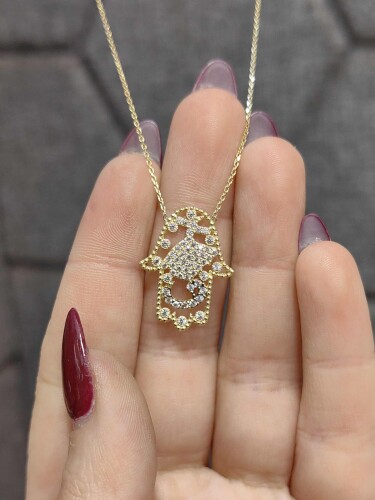 14 AYAR FATMA ANA ELİ SEMAZEN VAVLI MODEL ALTIN KOLYE