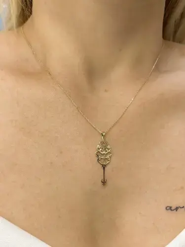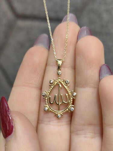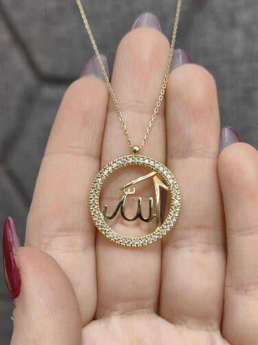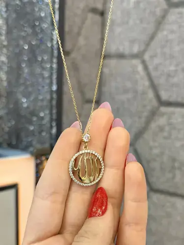 TAŞLI ALLAH LAFZI MODEL ALTIN KOLYE 14 AYAR