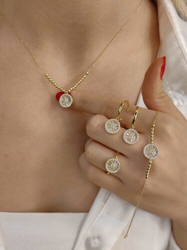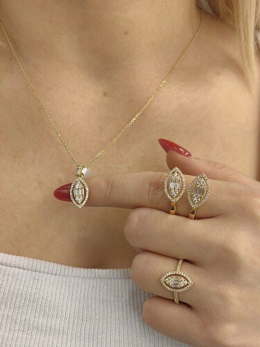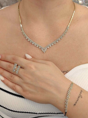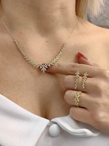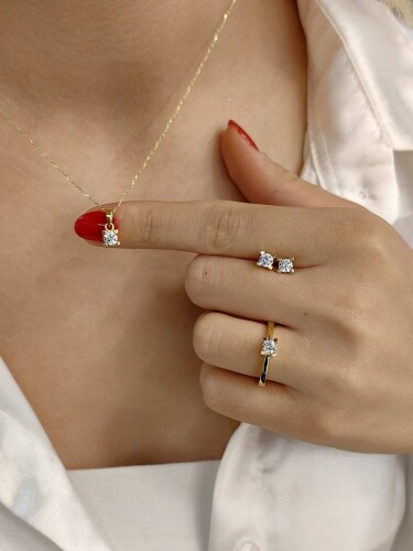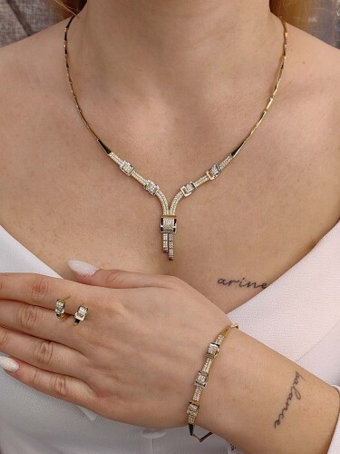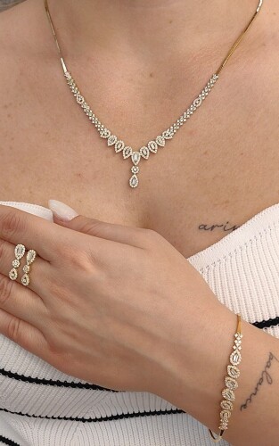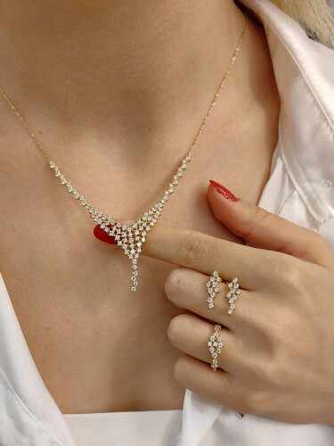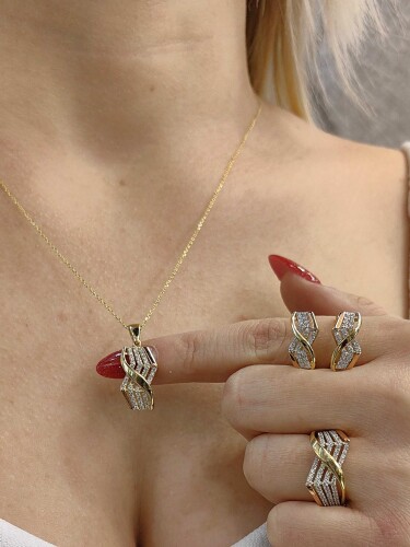 BAŞAK MODEL SWAROVSKİ TAŞLI 14 AYAR SET UCL00213-00215-00217