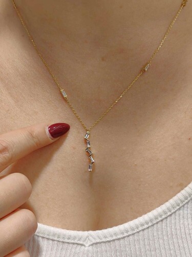 14 AYAR DİKDÖRGEN TAŞLI ZARİF ALTIN KOLYE KLY00590