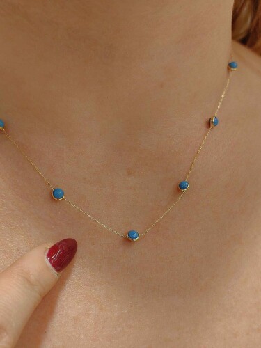 14 AYAR MİNİMAL NAZAR BONCUKLU ÖZEL TASARIM ZARİF ALTIN KOLYE