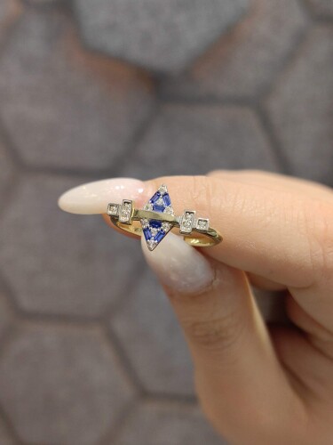 14 Ayar Özel Tasarım Mavi Taşlı Minimal Mekik Altın Yüzük, zarafeti özgün bir duruşla birleştiriyor. 2,24 gram ağırlığındaki bu eşsiz model, 14 ayar altının ışıltısını derin bir mavi taşla buluşturuyor. İnce işçilikle işlenen mekik formu, hem modern hem de zamansız bir şıklığın anahtarını sunuyor.