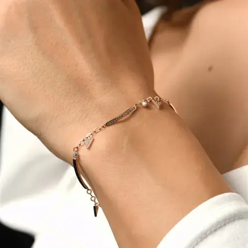 14 AYAR PİANO CABARET ÜÇGEN SALLANTILI TAŞLI ALTIN BİLEKLİK PXB0043