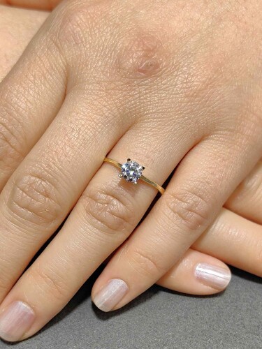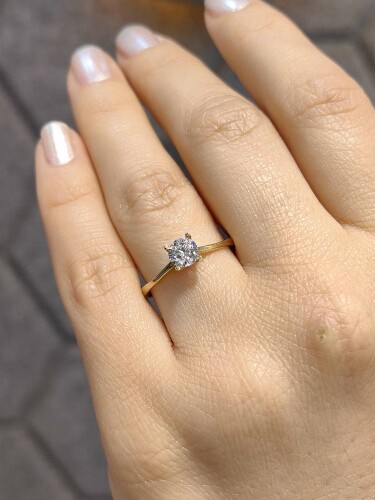 Zarifliğiyle büyüleyen, sade ama bir o kadar etkileyici 14 Ayar Tektaş Altın Yüzük, altın çağını parmaklarınıza taşıyor. 1.21 gram hafif yapısı, sarı altının zarif tonlarıyla birleşerek her anınıza sofistike bir dokunuş katıyor.