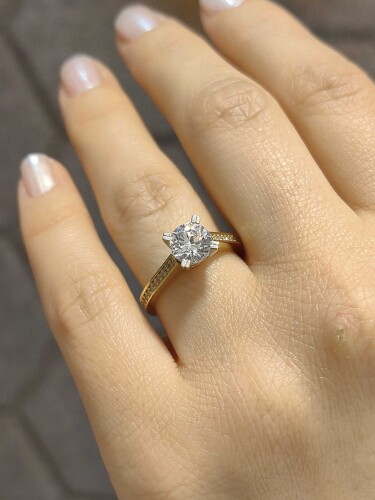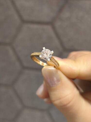 Günlük kullanım için zarif bir tamamlayıcı olmasının yanı sıra, söz, nişan ve düğün gibi özel günlerde de şıklığınızı ön plana çıkaracak. Tektaşın asil duruşuna eşlik eden taş sıraları, her açıdan ışıldamanızı sağlayacak şekilde tasarlandı.