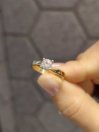 Sevginin en değerli ifadesi olan 14 Ayar Tektaş Altın Yüzük, sarı altının sıcaklığı ve ışıltılı tektaşıyla büyüleyici bir uyum sunuyor. Zamansız tasarımı, günlük şıklığınızı tamamlarken, söz, nişan ve düğün gibi unutulmaz anlarınıza da eşlik edecek.