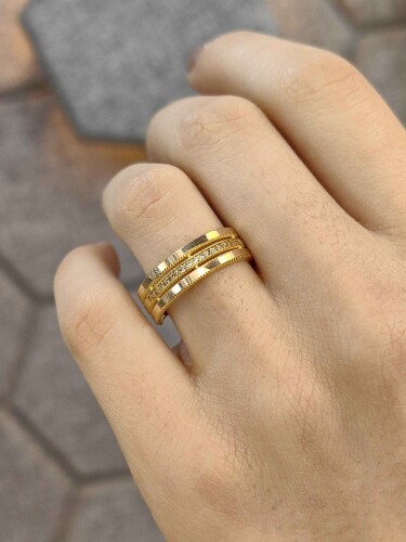 14 AYAR ÜÇLÜ AJDA MODEL TAŞLI TARZ FANTAZİ ALTIN YÜZÜK XYZ002621