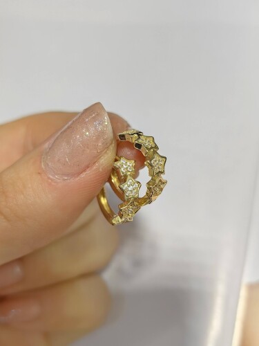 14 Ayar Yıldız Figürlü Halka Altın Küpe, 2.22 gram zarif ağırlığı ve etkileyici tasarımıyla stilinize zarafet katıyor. Sarı altın rengi ve 14 Ayar 585 milyem altın kalitesiyle üretilen bu küpe, yıldız figürleriyle modern bir dokunuş sunuyor. Günlük kullanımda rahatlıkla tercih edilebileceği gibi özel davetler, düğün, nişan ve söz gibi önemli anlarda da şıklığınızı tamamlayacak.