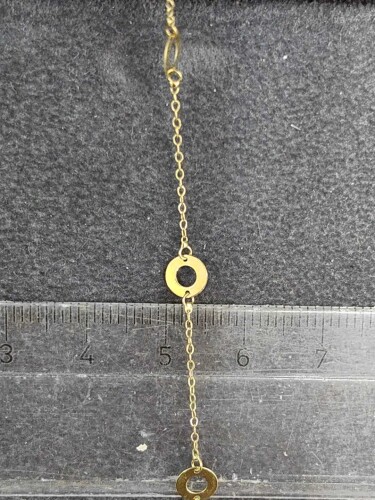 14 Ayar Zarif Bileklik KNY01693, 14 ayar (585 milyem) sarı altından üretilmiş ve 0,86 gram ağırlığıyla zarif bir tasarıma sahiptir. Standart ölçüleri sayesinde her bileğe rahatça uyum sağlar. Bu bileklik, günlük kullanımda şıklığınızı tamamlayacak mükemmel bir seçenek olup, düğün, nişan, söz ve davet gibi özel günlerde de zarafetinizi öne çıkarır. 2024 yılında Türkiye’de yerli üretim olarak tasarlanmış bu ürün, kaliteli işçiliği ve zarif tasarımıyla dikkat çeker.