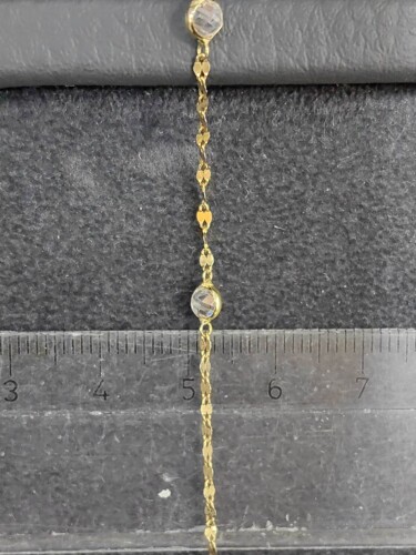 14 Ayar Zarif Taşlı Bileklik KNY01674, 14 ayar (585 milyem) sarı altından üretilmiş ve 1,23 gram ağırlığıyla zarif bir tasarıma sahiptir. Standart ölçüleri sayesinde her bileğe rahatça uyum sağlar. Bu bileklik, günlük kullanımda şıklığınızı tamamlayacak mükemmel bir seçenek olup, düğün, nişan, söz ve davet gibi özel günlerde de zarafetinizi öne çıkarır. 2024 yılında Türkiye’de yerli üretim olarak tasarlanmış bu ürün, kaliteli işçiliği ve zarif taşlı detaylarıyla dikkat çeker.