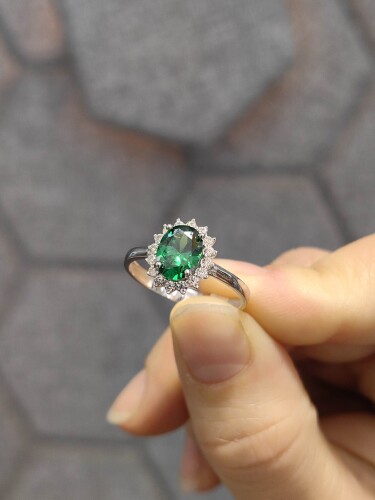 Standart ölçüde üretilen bu özel yüzük, ister günlük kombinlerinize zarif bir dokunuş katmak için ister söz, nişan ya da düğün gibi özel günlerde stilinizi tamamlamak için mükemmel bir seçim. Beyaz altın üzerine işlenen zümrüt yeşili taş detayı, doğanın dinginliğini modern şıklıkla buluşturuyor. Her detayı incelikle tasarlanan bu yüzük, yerli üretimin kalitesini ve usta işçiliği bir araya getiriyor.