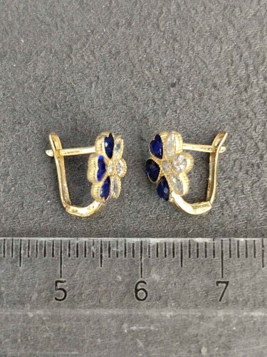 8 Ayar Mavi Taşlı Çiçek Model Bebek Altın Küpe – KUP01488