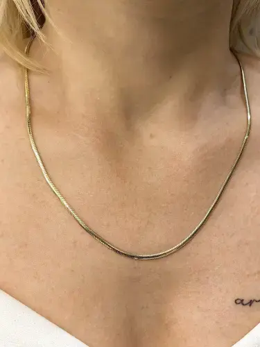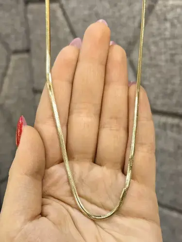 14 Ayar Balık Sırtı Zincir Altın Kolye ZNC00840, zarif ve modern bir tasarıma sahip olup, 5,64 gram ağırlığıyla şıklığınızı tamamlar. Sarı altın renginde üretilmiş bu kolye, 14 ayar 585 milyem standardı ile dayanıklı ve uzun ömürlüdür. Hem günlük kullanımda hem de özel günlerde, söz, nişan ya da düğün gibi etkinliklerde tercih edilebilecek mükemmel bir seçenektir.