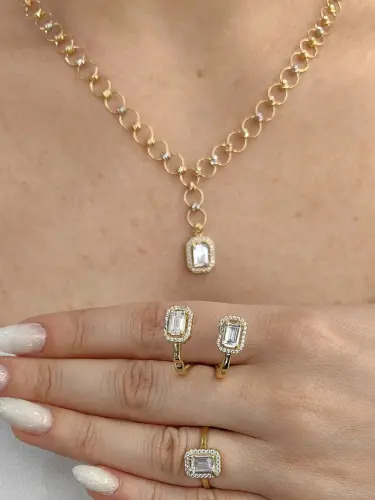 Her bir parçası ile öne çıkan bu takı seti, hayatınıza ışıltı ve anlam katacak bir seçenek sunuyor