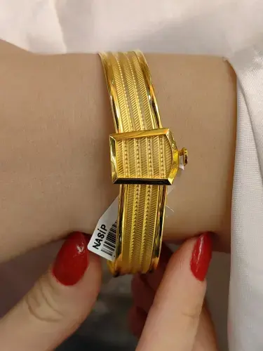 Geleneksel hasır motiflerinin zarif bir dokunuşla işlendiği bu kelepçe, günlük kullanımdan söz, nişan ve düğün gibi özel günlere kadar geniş bir kullanım alanına sahiptir. Sarı altının sıcak ışıltısı, tasarıma zamansız bir zarafet kazandırarak her ortamda dikkat çekmenizi sağlar.