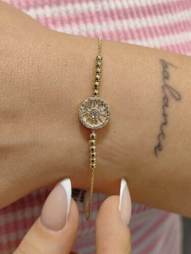 KORONET BAGET TAŞLARDAN DİZİLMİŞ FORCE ZİNCİRLİ TOPLU MİNİMAL 14 AYAR ALTIN TARZ BİLEKLİK KNY01417