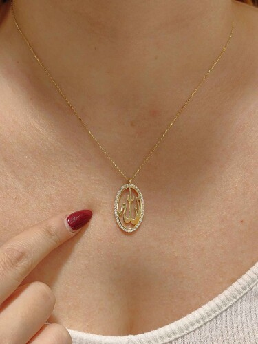 TAŞLI ALLAH LAFZI MODEL ALTIN KOLYE 14 AYAR KLY00200