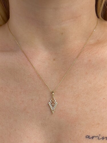 Günlük kullanımda rahatlıkla kullanılabileceği gibi söz, nişan ve düğün gibi özel günlerde de tercih edilebilir. Türkiye yerli üretimi olan bu kolye, v model tasarımıyla modern ve zarif bir görünüme sahiptir, her kadının takılar koleksiyonuna eklemek isteyeceği bir parça.