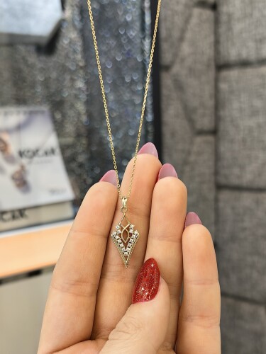 TAŞLI V MODEL ALTIN KOLYE 8 AYAR KLY00316